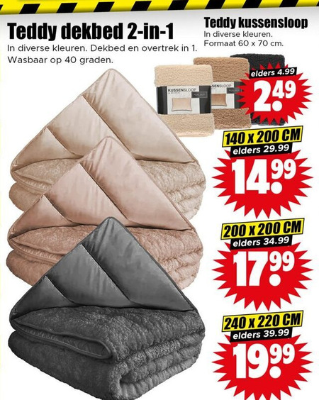 kussensloop dekbed 40 60 140 200 240 teddy kleuren overtrek wasbaar graden formaat cm elders