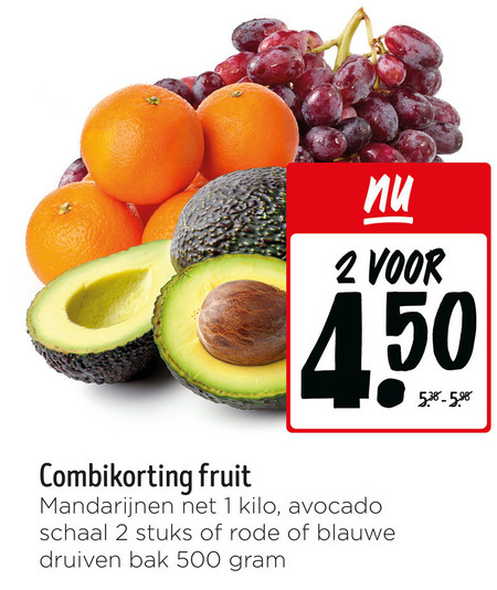 500 combikorting fruit mandarijnen kilo avocado schaal stuks rode blauwe druiven bak