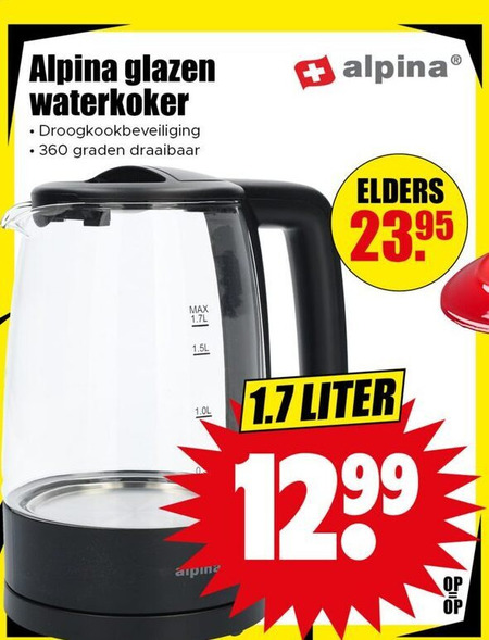 alpina glazen waterkoker droogkookbeveiliging graden draaibaar elders liter 12 99