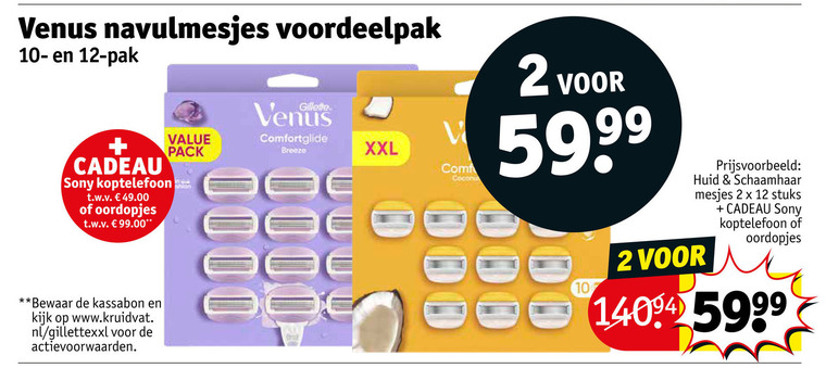 10 12 venus navulmesjes pak gillette pack breeze cadeau sony koptelefoon t.w.v. oordopjes xxl huid schaamhaar mesjes stuks kassabon nl