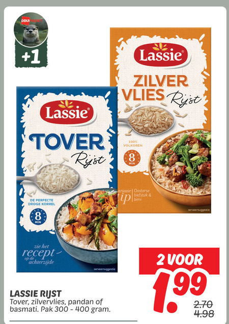 99 100 deka lassie tover rijst zilver vlies volkoren min droge korrel oosterse biefstuk serveersuggestie achterzijde zilvervlies pandan basmati pak
