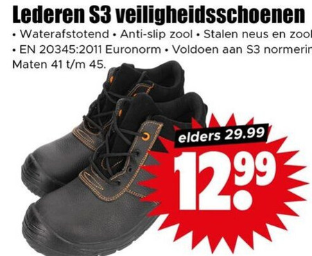 45 lederen veiligheidsschoenen waterafstotend anti slip zool stalen neus voldoen normering maten elders