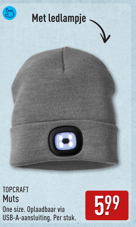 ledlampje muts one size oplaadbaar usb aansluiting stuk