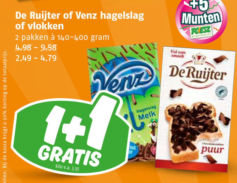 50 ruijter venz hagelslag vlokken pakken kilo v.a. melk munten puur kassa