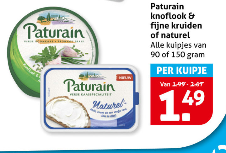 90 150 paturain verse roomkaas fromage frais knoflook kaasspecialiteit naturel melk room snufje zout fijne kruiden kuipjes kuipje