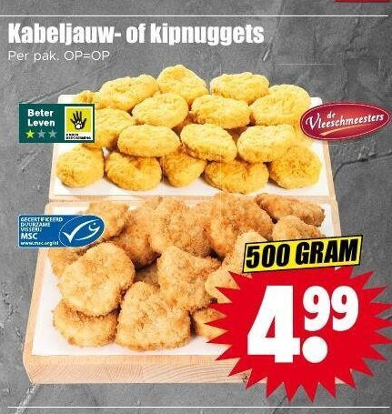 kipsnacks 500 kabeljauw kipnuggets pak beter leven duurzame vleeschmeesters