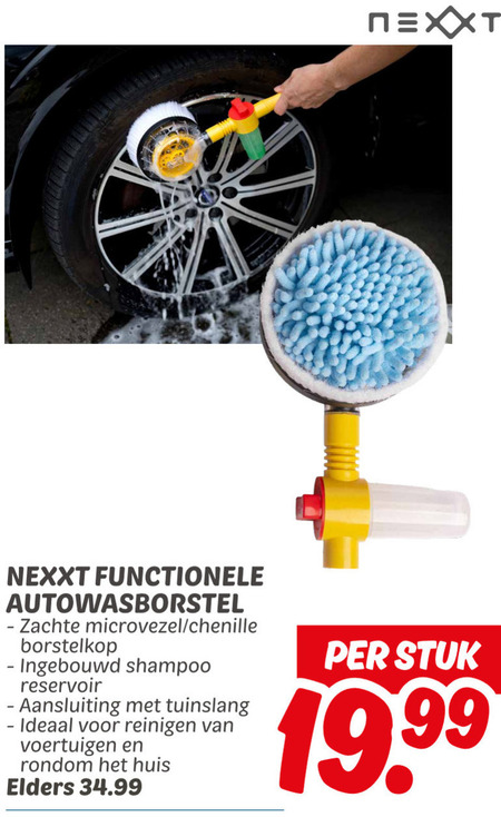 nexxt autowasborstel zachte microvezel chenille borstelkop shampoo reservoir aansluiting tuinslang reinigen voertuigen rondom huis elders stuk
