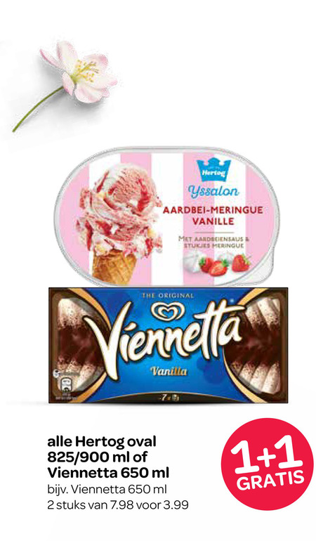 650 hertog yssalon aardbei meringue vanille stukjes original viennetta oval 825 ml stuks 3.99