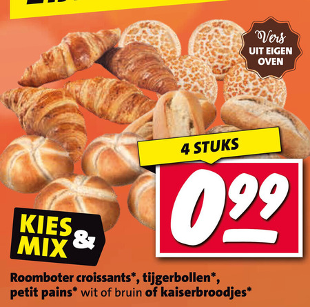 vers oven mix stuks roomboter croissants tijgerbollen petit pains wit bruin kaiserbroodjes