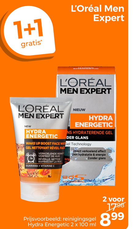 100 men expert new hydra energetic hydraterende gel der glans technology wake up boost face wasgel nettoyant verkoelende huid nettoie la peau ge guarana vitamine verkoelend effect hydratatie energie reinigingsgel ml
